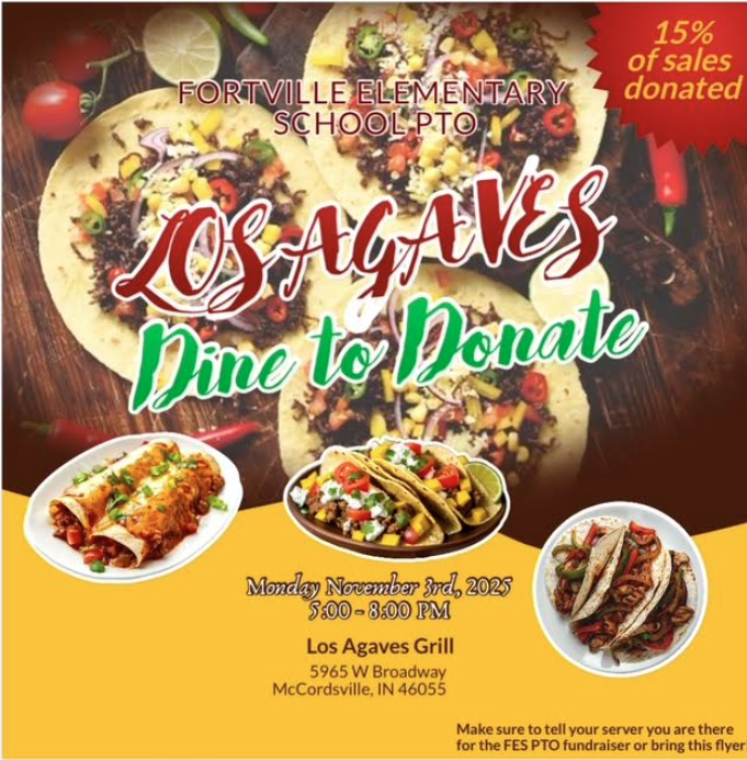 donated back to your FES PTO. Don’t forget to let your server know you are there for the FES